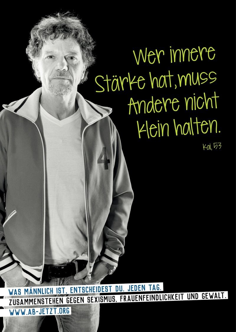 Mit der klaren Aufforderung „Männlichkeit entscheidest Du“ werden alle Männer auffordert, veraltete Männlichkeitsbilder über Bord zu werfen und selbstbewusst mit positiver Männlichkeit umzugehen.