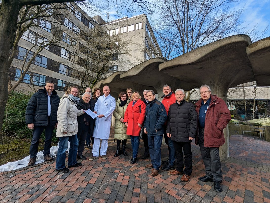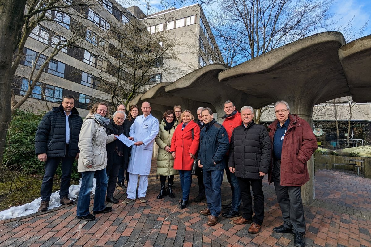 Auf dem Bild von links: Rainer Hinrichs, Michaela Teske, Gero Neidlinger, Hans-Georg Volquardts, Pflegedirektorin Meike Buchholz, Leitender Arzt der Neurochirurgie Prof. Dr. Andreas Stark, Janet Sönnichsen, Sönke Schwager, Beate Nielsen, Hans-Otto Schülldorf, Siegfried Tomkowiak, Michael Heinrich, Wolfgang Wachholz und Betriebsratsvorsitzender Jörg Zimmermann (nicht im Bild: Tanja Petersen und Peter Orda).