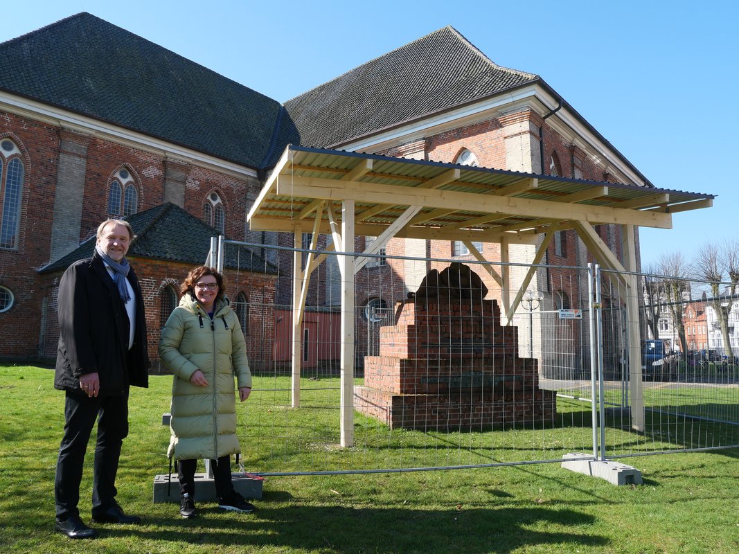 Auf dem Foto: Pastor Rainer Karstens (Ev.-Luth. Kirchengemeinde Rendsburg) und Bürgermeisterin Janet Sönnichsen.
