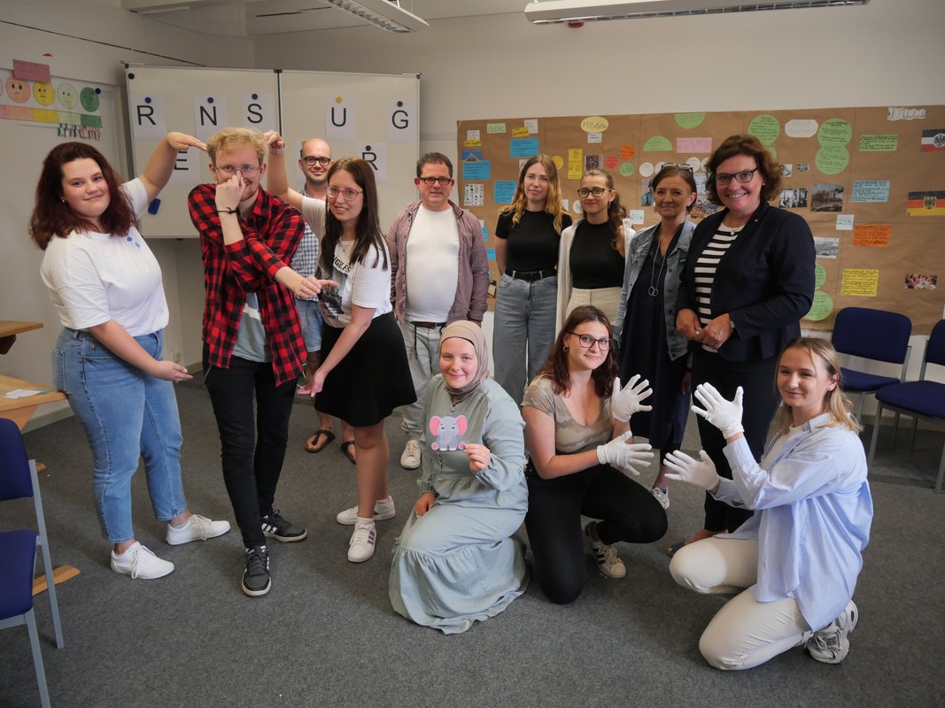 Für das Sommerferienprogramm der Stadt Rendsburg haben angehende Erzieherinnen und Erzieher dieser Schule ein ganz besonderes Angebot erarbeitet: Unter dem Motto „Mit den Händen sprechen lernen“ können Kinder und Jugendliche im Alter von 9 bis 18 Jahren auf spielerische Weise die Gebärdensprache kennenlernen und üben. „Wir sind sehr stolz, dass wir die Azubis der Gehörlosenfachschule erstmals in unserem Programm dabeihaben“, so Bürgermeisterin Janet Sönnichsen. „Vor allem aber freue ich mich, dass sie zusammen mit der Schulleitung und den Lehrkräften hier bei uns in Rendsburg diese wichtige Arbeit leisten. Und ich wünsche mir, dass mehr Menschen davon erfahren. Mit dem neuen Projekt wird ein toller Einblick gegeben.“
