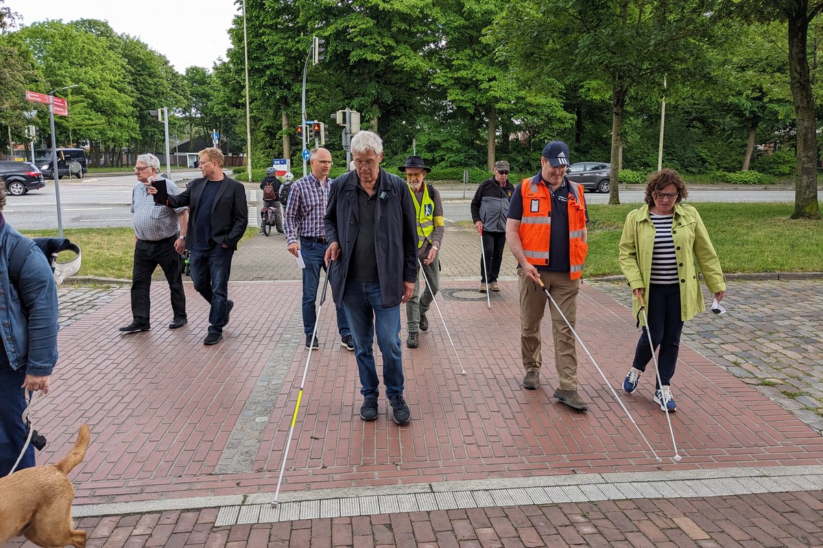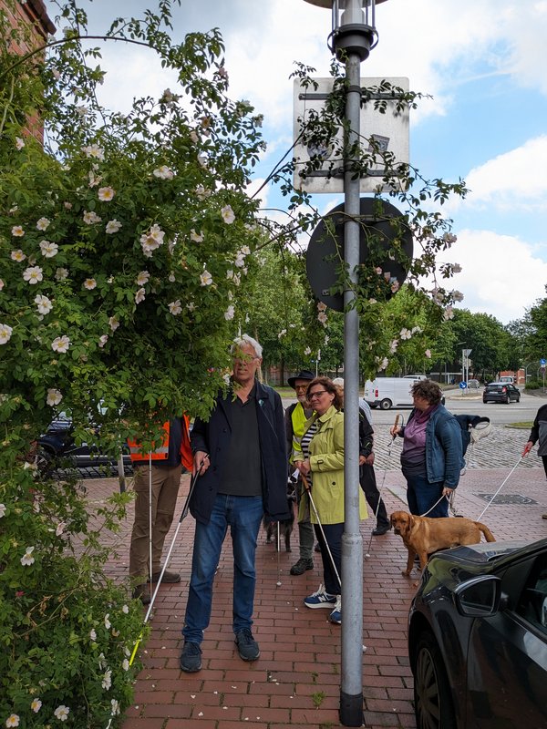Während des Rundgangs wiesen die Teilnehmerinnen und Teilnehmer auf fehlende taktile Leitsysteme und akustische Signale an Ampelanlagen hin. Diese Hinweise wurden vom Fachdienst Tiefbau und vom Fachdienst Ordnung und Verkehr aufgenommen. „Wir sind dankbar für Hinweise auf Verbesserungsmöglichkeiten, gerade von den Betroffenen selbst“, betonten die Fachdienstleiter Ulli Clausen und Matthias Galow. Besondere Aufmerksamkeit erhielt die Situation am ZOB, für den eine grundlegende Umgestaltung geplant ist. Sönnichsen: „Wenn diese Planungen konkreter werden, binden wir selbstverständlich Axel Hennecke, den Behindertenbeauftragten der Stadt, mit ein.“ Bei Oberflächenerneuerungen im Straßen- und Wegenetz werden inzwischen immer taktile Elemente und Leitsysteme eingebaut, wie etwa am Überweg über die Baronstraße am südlichen Ende der Prinzessinstraße. Abschließend betonte Hennecke, dass bei anderen Formen der Behinderung weitere Aspekte zu berücksichtigen sind. Diese Anliegen werden regelmäßig im Arbeitskreis für Menschen mit Behinderungen diskutiert.