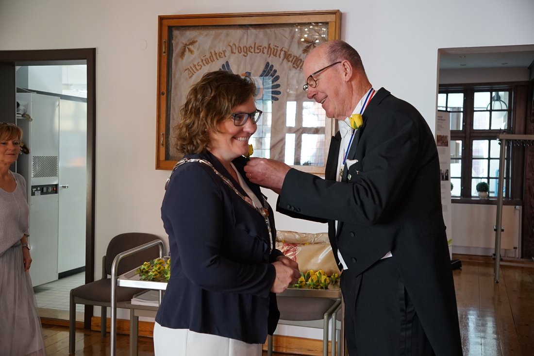 Bürgermeisterin Janet Sönnichsen empfing die Mitglieder der Gilde am Morgen im Alten Rathaus. Nach einem festlichen Empfang und ihrer Ansprache setzte sich der traditionelle Marsch durch die Stadt in Bewegung, mit dem Ziel, am Nachmittag den Rendsburger Schützenverein zu erreichen. Dort begann das Königsschießen – ein Höhepunkt des Gildetages. Am Abend stand der neue Gildekönig fest: Unternehmer Carsten Tietje wurde zum neuen König der Altstädter Vogelschützengilde ernannt. Herzlichen Glückwunsch!