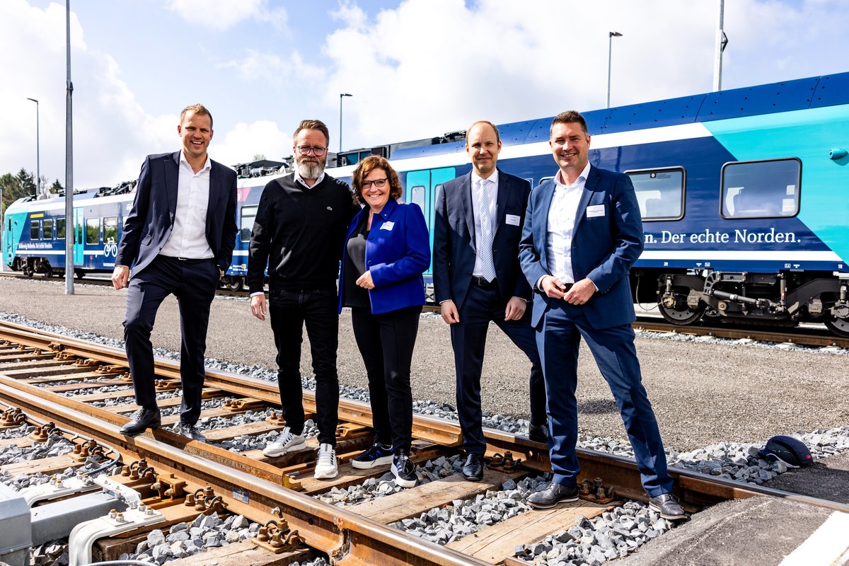 In Rendsburg wurde am Donnerstag, 30. Mai, das neue Instandhaltungswerk für Akkuzüge des schweizerischen Unternehmens Stadler eingeweiht. Das hochmoderne Werk ist in seiner Wartungs- und Ladeinfrastruktur weltweit einzigartig. Am Standort unmittelbar neben dem Gelände des Oktogon in der Loher Straße werden von nun an 55 FLIRT Akku Züge gewartet, geladen und instand gehalten. „Wir freuen uns sehr über diese Ansiedlung“, sagte Bürgermeisterin Janet Sönnichsen bei der feierlichen Einweihung des neuen Werks. „Dadurch konnten wir unsere Stadtteile Seemühlen und Mastbrook an das Schienennetz anbinden. Die hier lebenden Menschen erhalten damit eine Direktverbindung nach Kiel und auch an den Innenstadtbereich rücken die Quartiere näher heran. Und ich hoffe, dass die Linien früher als zuletzt von NAH.SH angekündigt, in Betrieb gehen können.“