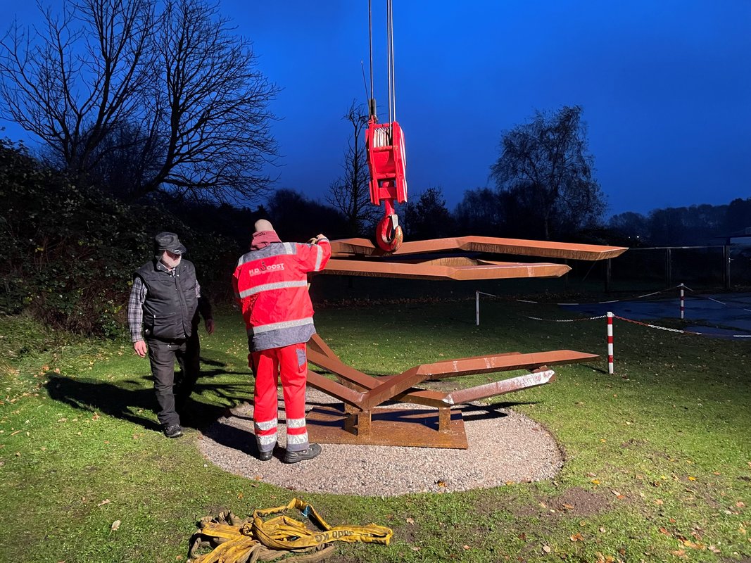 Foto1: Die Skulptur wurde an einem späten Novembernachmittag angeliefert.