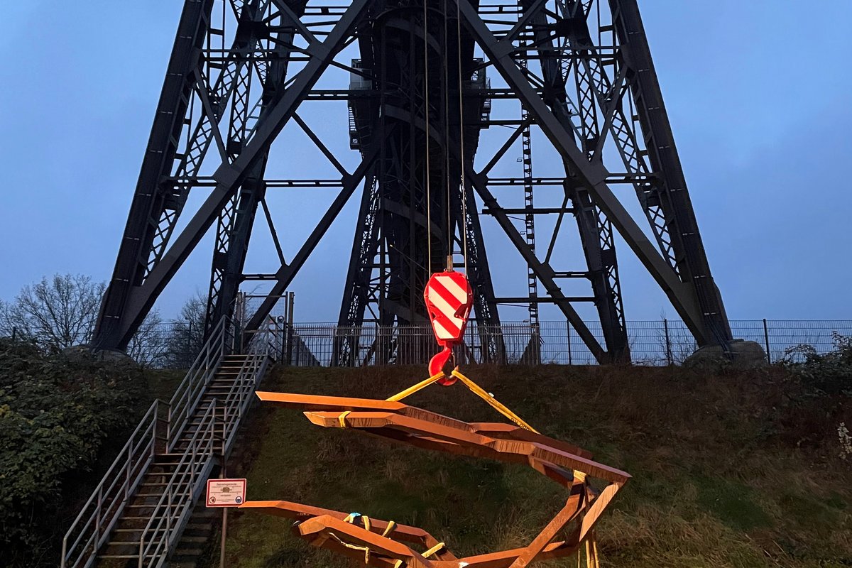 Der renommierte deutsche Stahlbildhauer Robert Schad ist mit seinem Ausstellungsprojekt „BLICKWEIT — Skulpturen für den Norden“ jetzt auch nach Rendsburg gekommen. Das Projekt war zuvor bereits in Frankreich, Portugal und Österreich gezeigt worden und umfasst insgesamt etwa 30 Skulpturen, die seit diesem Herbst an 20 Standorten im Nordwesten Schleswig-Holsteins zu finden sind. Eine von ihnen wurde nun in unmittelbarer Nähe zum Nord-Ostsee-Kanal installiert. Ihr Name: PALUT.