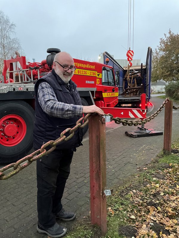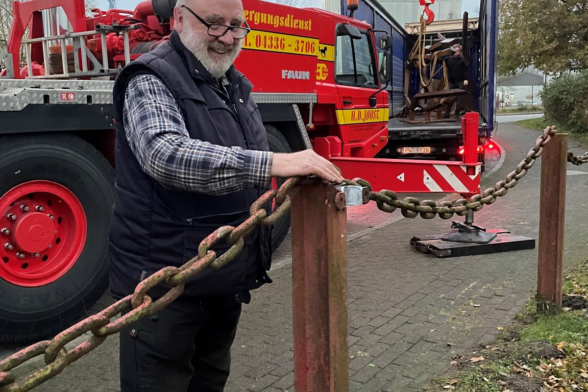 Foto2: Der Stahlbildhauer Robert Schad begleitete persönlich die Installation.