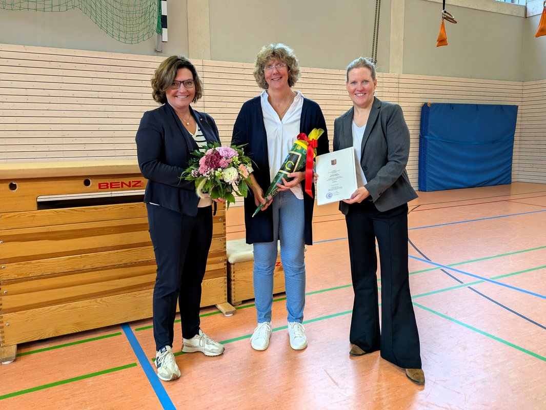 Die feierliche Ernennung fand in der Sporthalle der Schule statt, umgeben von zahlreichen Schülerinnen und Schülern. Besonders bewegend: Kinder der zweiten Klassen sangen zur Begrüßung ein Lied. Das Kollegium überraschte die neue Schulleiterin mit einer kleinen Schultüte. Von den Kolleginnen und Kollegen gab es viel Lob: Blume-Bathke sei eine Schulleiterin, die sich kümmere, die strukturiert arbeite und viele Ideen mitbringe. Auch Bürgermeisterin Janet Sönnichsen gratulierte: „Mit Frau Blume-Bathke hat die Schule eine erfahrene und engagierte Leiterin, die das Vertrauen des Schulträgers, der Stadt Rendsburg genießt. Wir freuen uns sehr, dass sie diese wichtige Aufgabe übernimmt.“