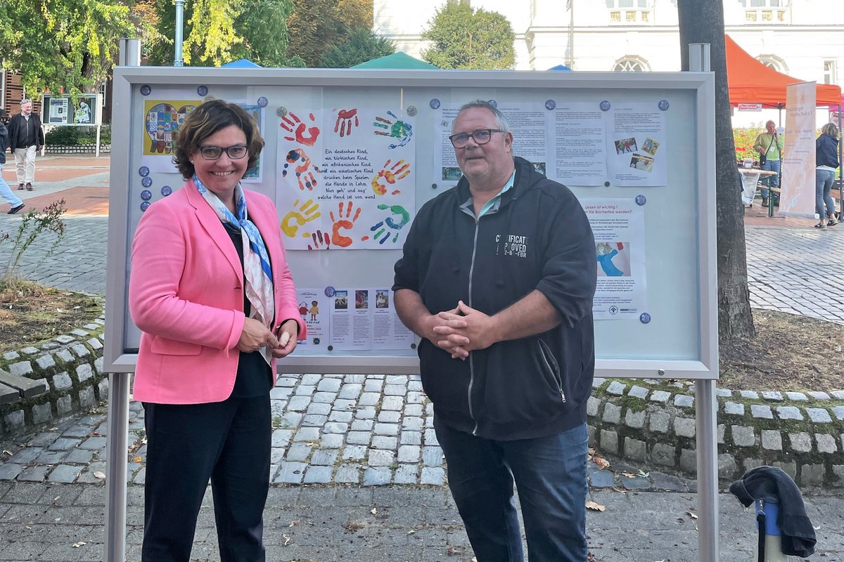 Seit gut zwei Jahren ist der Hans-Heinrich-Beisenkötter-Platz vor dem Stadttheater auch der Platz der Kinderrechte. Eine damals errichtete Stele ermahnt dazu, die Kinderrechte umzusetzen, die Rechte der Kinder in der Stadt sichtbar zu machen und ein Zeichen zu setzen für eine kinderfreundliche Gesellschaft. Nun wurde dieser Platz um ein weiteres Element ergänzt – einen Schaukasten, der laufend Informationen bereithält.