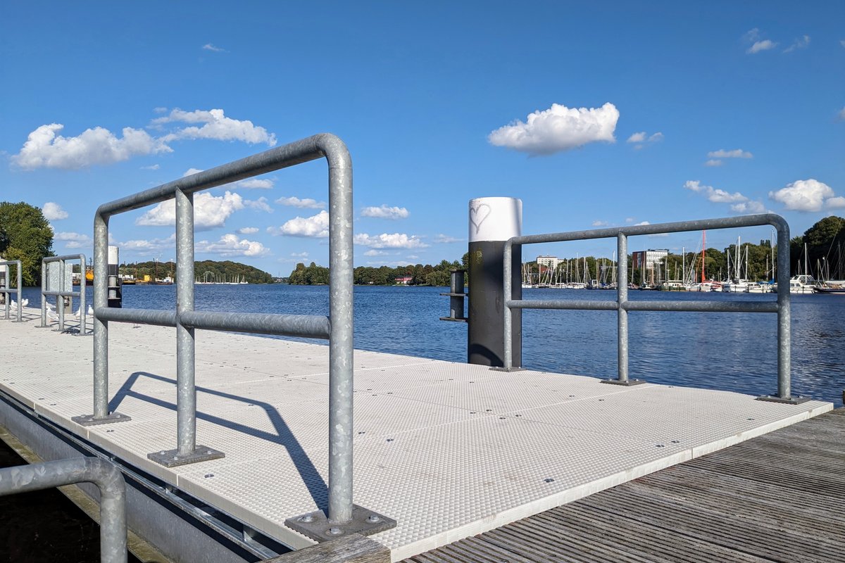 Der Schwerlaststeg am Obereiderhafen ist nach umfassender Erneuerung wieder freigegeben. Damit konnte das Ziel erreicht werden, die Arbeiten noch vor dem Rendsburger Herbst zum Abschluss zu bringen, sodass hier auch wieder das traditionelle Entenrennen stattfinden konnte. Fünf Wochen haben die Arbeiten zur Erneuerung des Bohlenbelags angedauert.