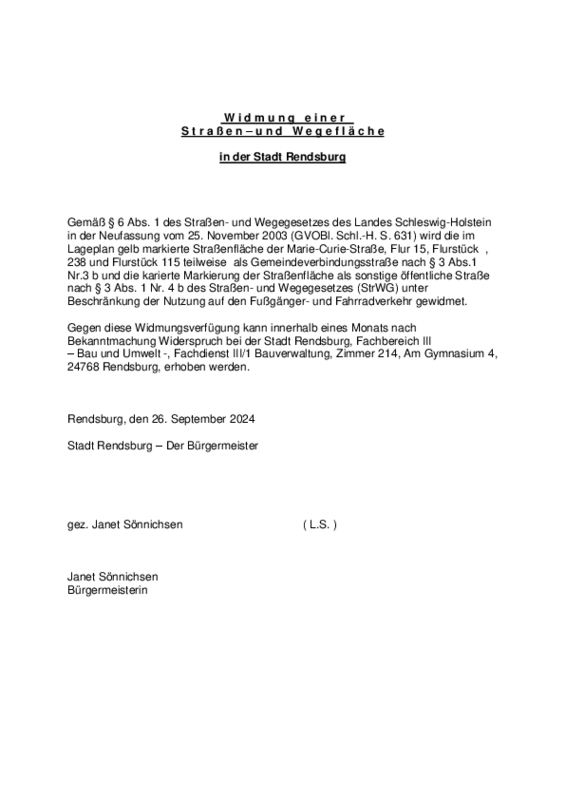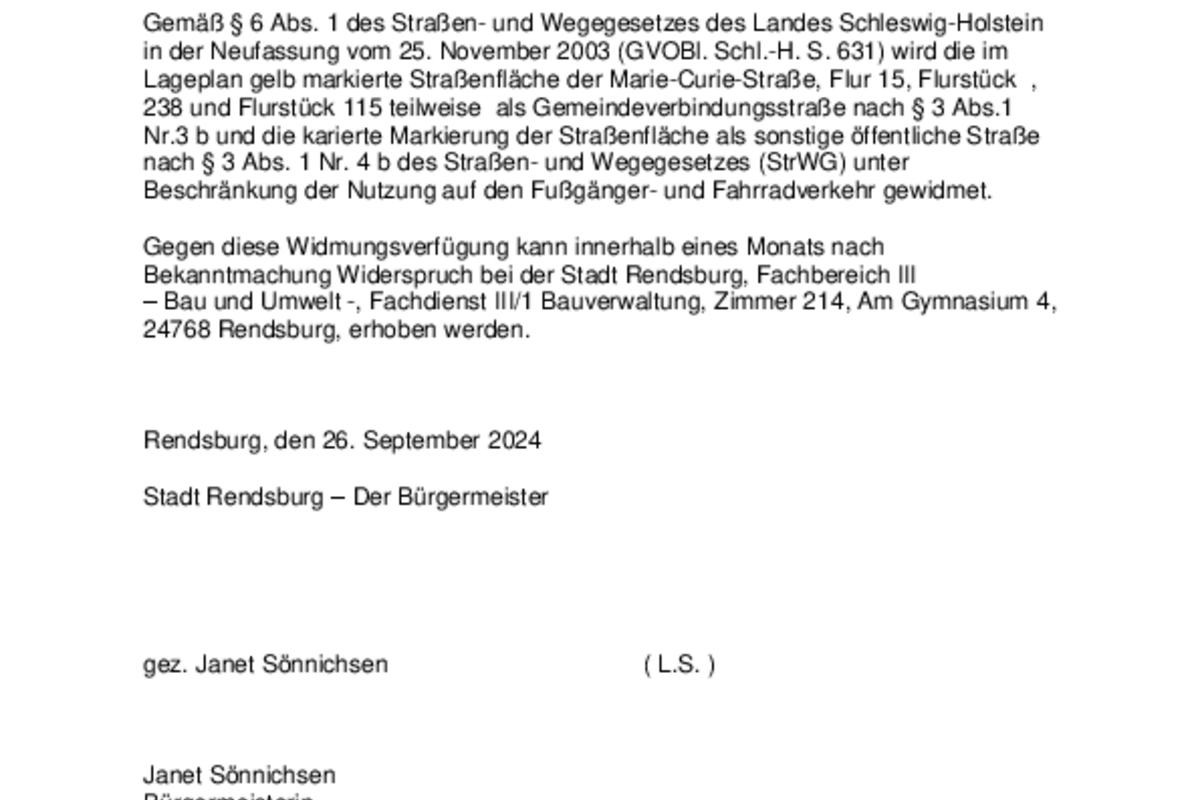 Widmung von Straßen- und Wegeflächen