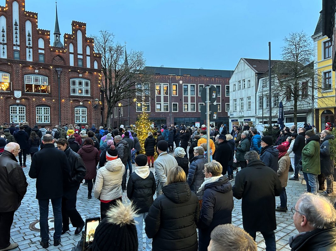 Zehn Blechbläserinnen und Blechbläser unter der Leitung von Hayo Schröter musizierten am 24. Dezember in der Zeit von 15:45 Uhr bis 16:25 Uhr aus den Fenstern des Alten Rathauses. Mit der sehr gelungenen Darbietung von klassischen Weihnachtsliedern verbreitete sich eine besinnliche Atmosphäre und eine festliche Einstimmung auf den Heiligabend.
