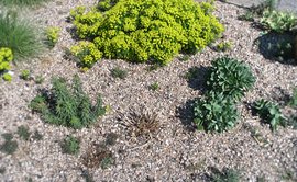 Ein Schottergarten kann nur mit viel Aufwand dauerhaft in seinem sterilen Zustand gehalten werden, mit relativ wenig Aufwand kann aber die Umwandlung in eine attraktive und ökologisch wertvolle Blühfläche gelingen. Entfernen sie am besten die Folie unter dem Schotter oder dem Kies. Wenn dies nicht geht, kann die Folie auch geschlitzt und durchlöchert werden, um den zukünftigen Blühstauden das Einwurzeln in den Boden zu erleichtern. Wenn die Schotter- oder Kiesschicht nicht dicker als zehn Zentimeter ist, können an trockene und magere Standorte angepasste Stauden direkt in das Schotter- oder Kiesbett gepflanzt werden, fünf bis zehn Pflanzen pro Quadratmeter sollten es schon sein.