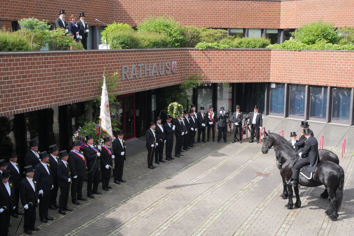 Immer am Montag nach Pfingsten findet der Gildetag der Neuwerker Scheiben-Schützen-Gilde statt. Zur Tradition gehört hierbei ein morgendlicher Besuch im Rathaus.