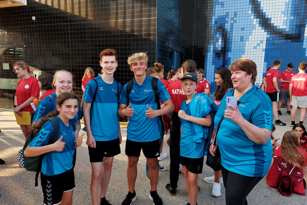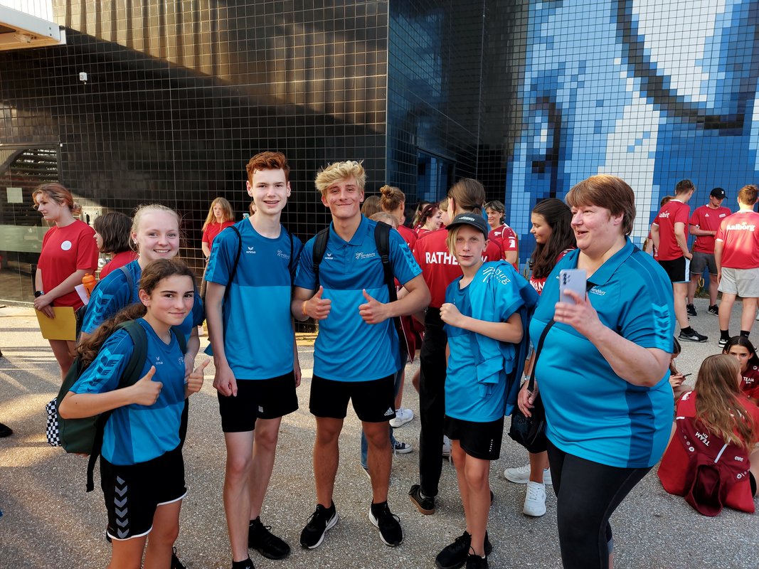 Gut ausgeschlafen und gestärkt nahmen die Teilnehmerinnen und Teilnehmer am Montag ihre ersten Aktivitäten auf. Sie trainierten in ihren Sportarten und lernten einander kennen. Während die Badmintonspieler*innen im klimatisierten Topsport-Zentrum städteübergreifend ihre Geschicklichkeit unter Beweis stellten, schwitzten die Schwimmer*innen in der nahegelegenen Schwimmhalle beim Training. Nicht weniger beansprucht waren die Leichtathleten, die bei 29° C Außentemperatur von ihren Trainern Erik Scheidemann und Johannes Rabe auf die bevorstehenden Wettkämpfe eingestellt wurden. Und auch das Ruder-Team machte eine Ausfahrt, um das Revier kennenzulernen. So positiv wie der Tag begann, setzte er sich dann mit der feierlichen Eröffnungsveranstaltung am Abend fort.