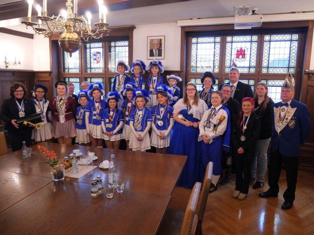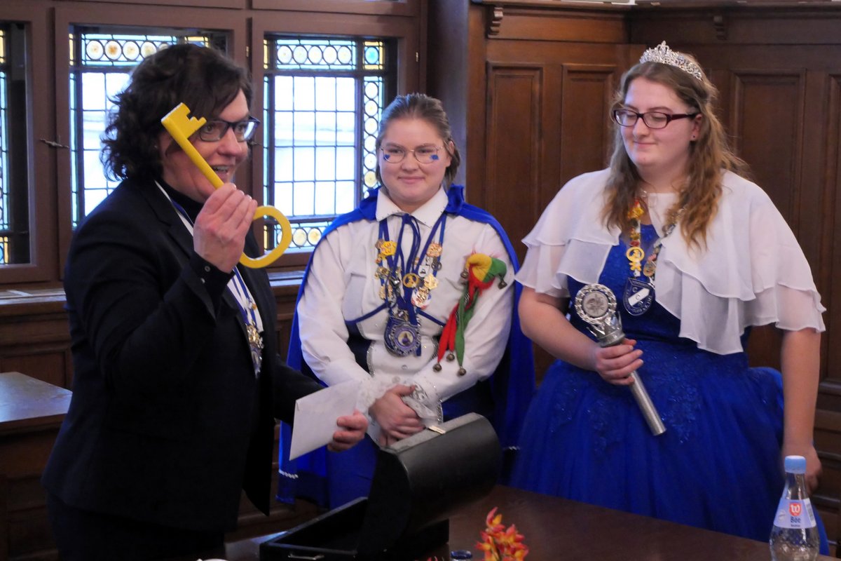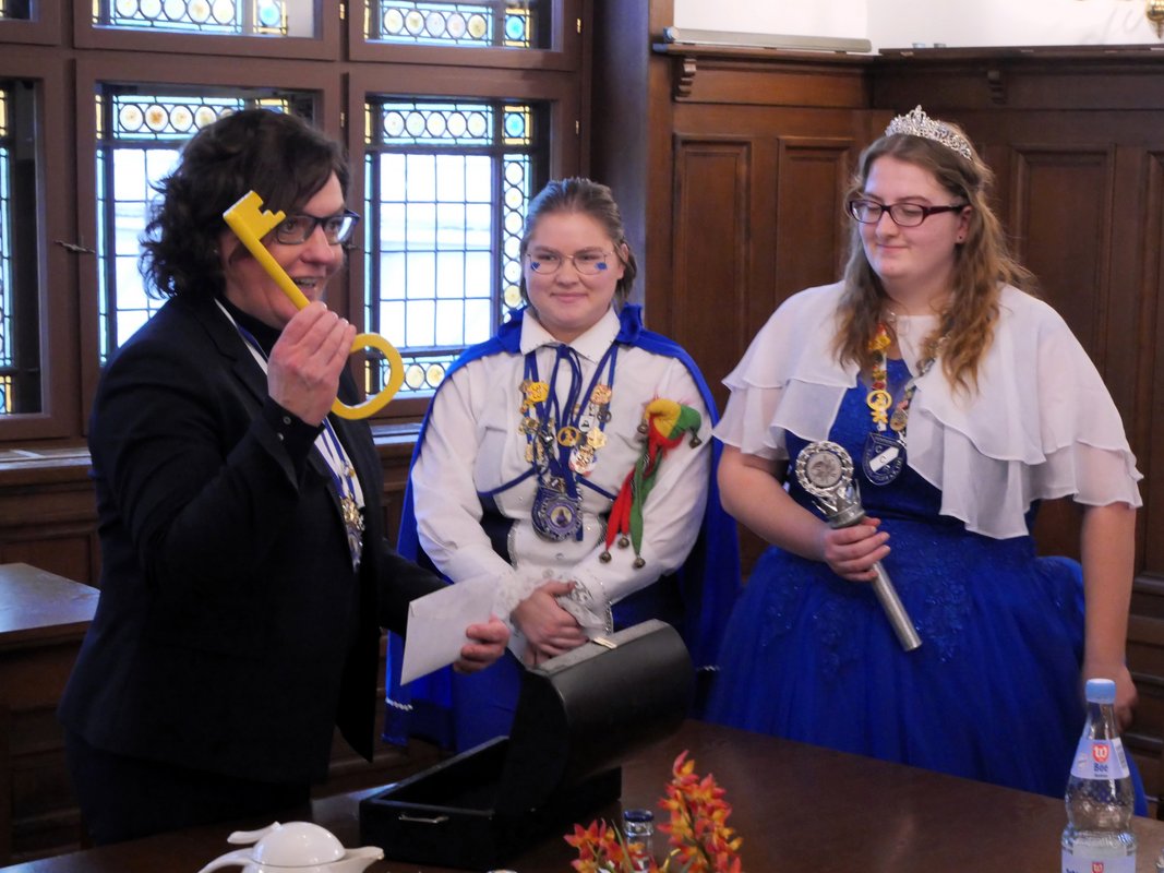 Am Aschermittwoch, 14. Februar, war eine Delegation des Carneval-Clubs Rendsburg (CCR) zu Gast im Alten Rathaus und wurde dort von Bürgermeisterin Janet Sönnichsen empfangen. Grund für den Besuch der Karnevalisten war die symbolische Rückgabe der Stadtkasse sowie des Rathausschlüssels, die die Narren am Sonntag vor Rosenmontag beim Rathaussturm ergattert hatten. Verbunden mit der Rückgabe war eine Geldspende an die Stadt in Höhe von 111,11 Euro.