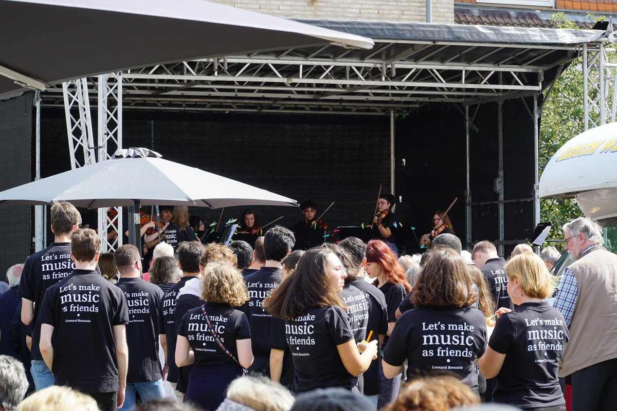 Sonnenschein, talentierte Musiker sowie ein begeistertes Publikum – am Samstag, 6. Juli, war das Festivalorchester des Schleswig-Holstein Musik Festivals (SHMF) zu Gast in Rendsburg und hat auf dem Schiffbrückenplatz während des Wochenmarktes einige Kostproben aus dem Programm gegeben. Zu hören und zu sehen waren am Festivaltag etwa Stücke von Mendelssohn und Mozart – alles kostenlos. „Das war eine tolle Symbiose auf dem Wochenmarkt mit dem Orchester, dessen Mitglieder aus fast 30 Nationen zusammenkommen“, so Bürgermeisterin Janet Sönnichsen. „Hier verbindet Musik die Nationen und damit Menschen in der ganzen Welt.“