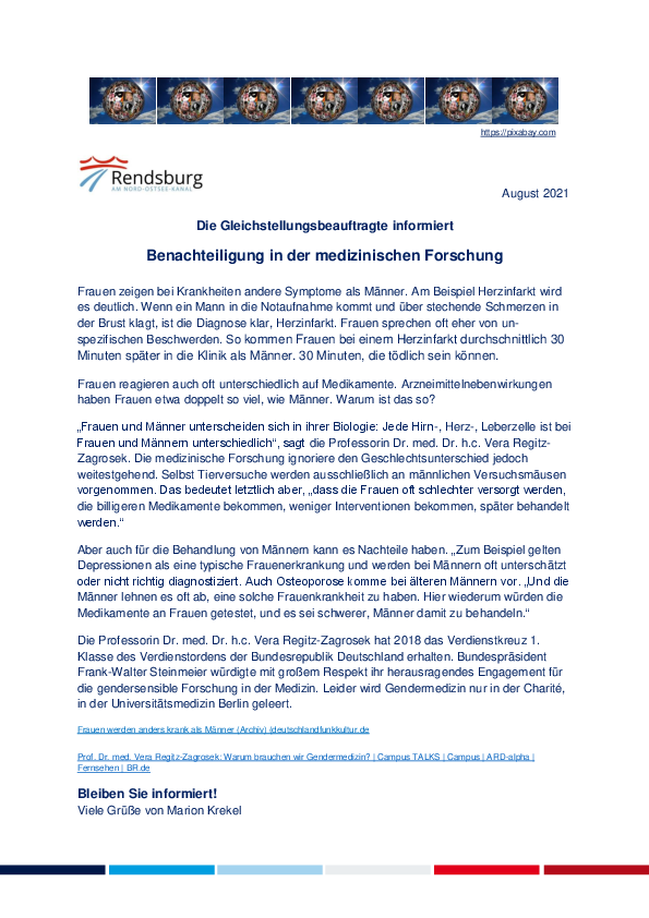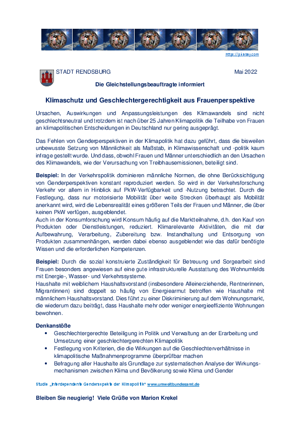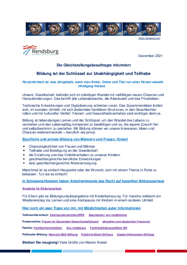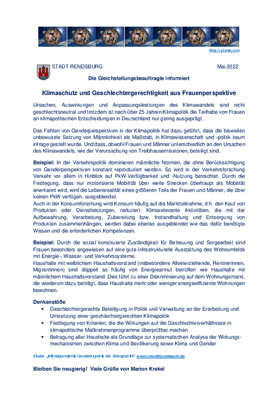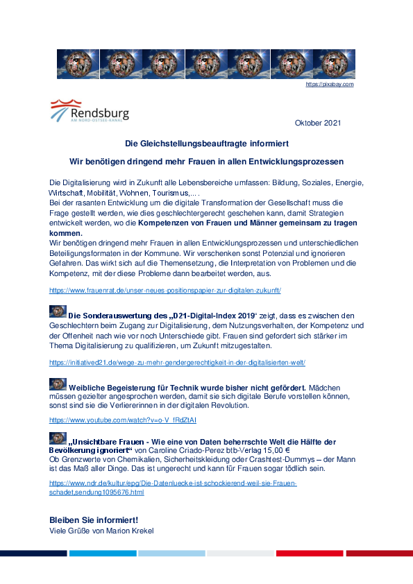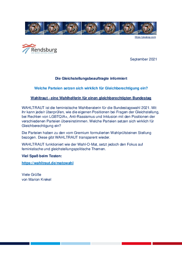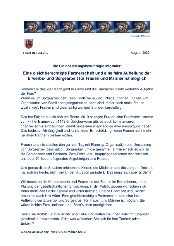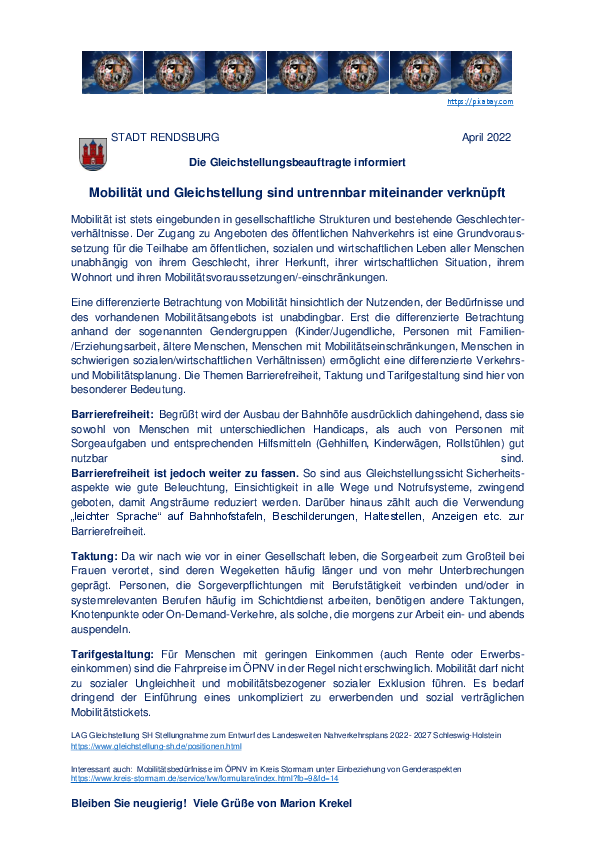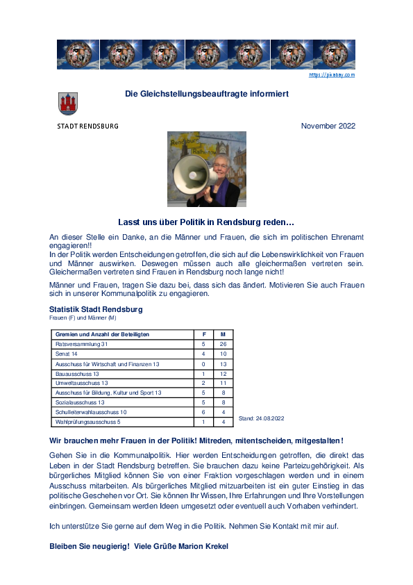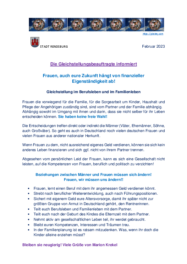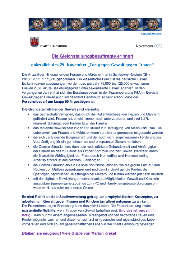 Rundschreiben der Gleichstellungsbeauftragten der Stadt Rendsburg