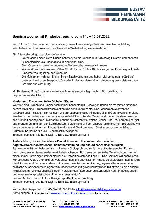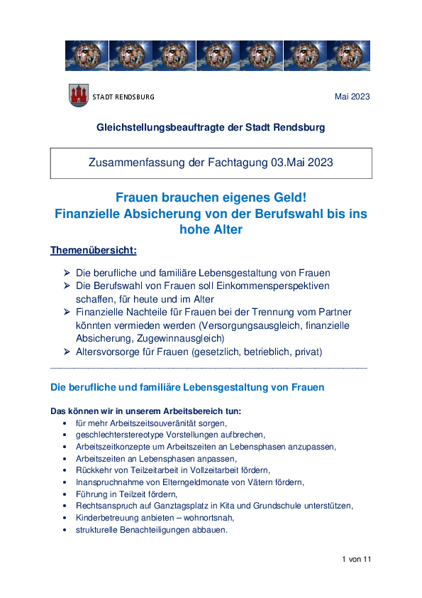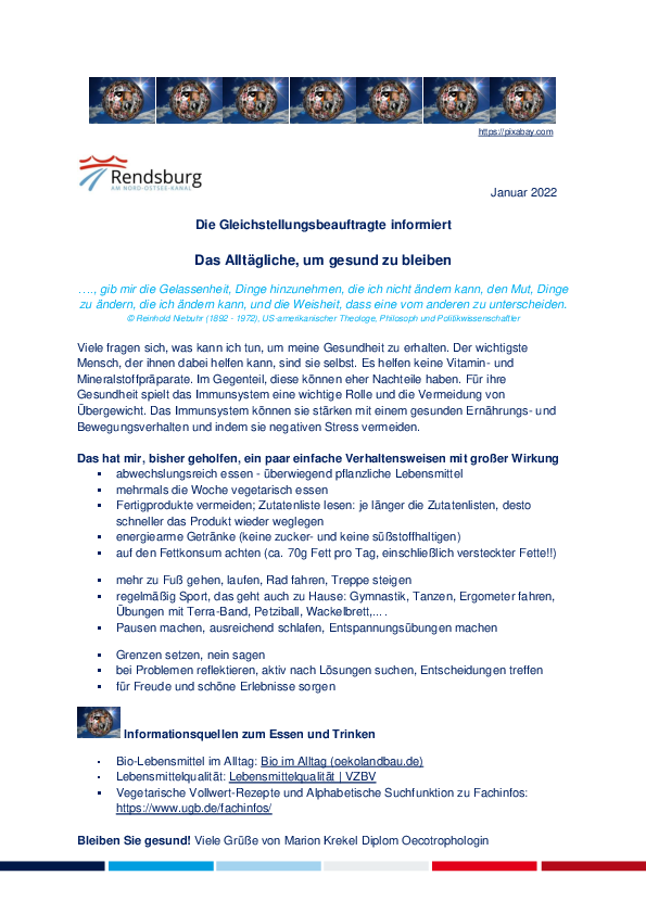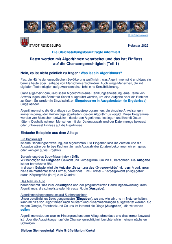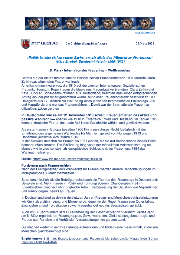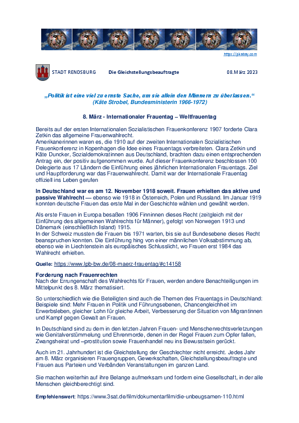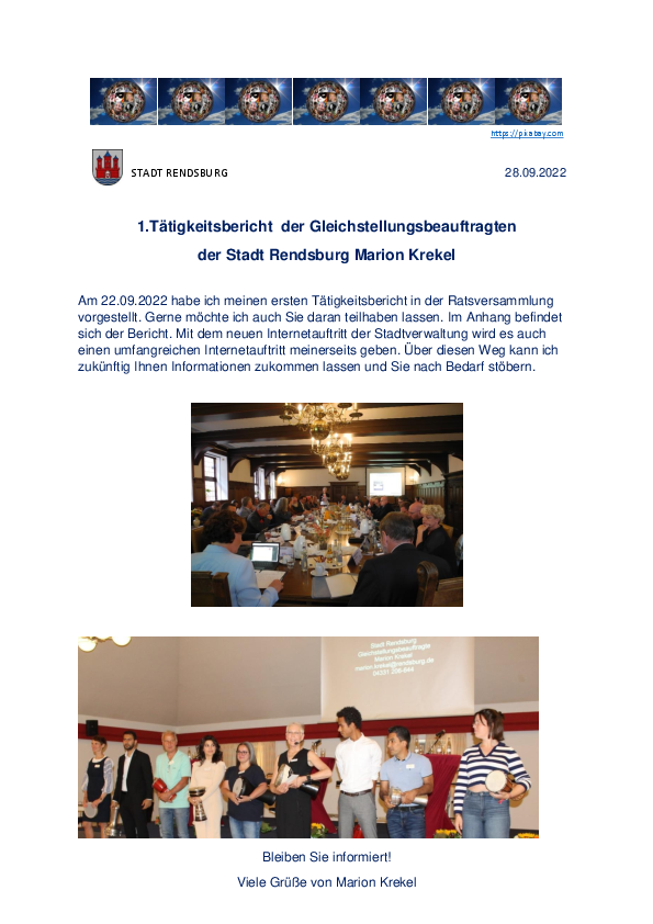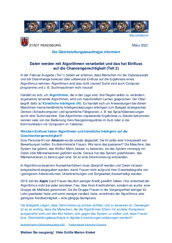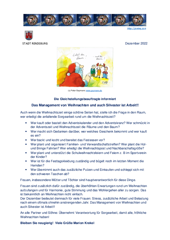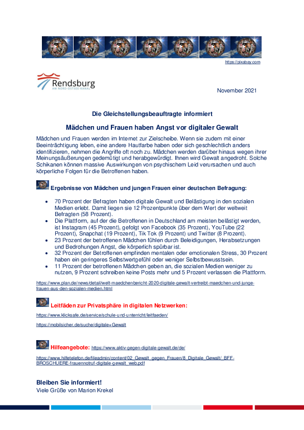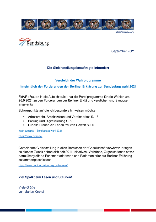 Rundschreiben der Gleichstellungsbeauftragten der Stadt Rendsburg