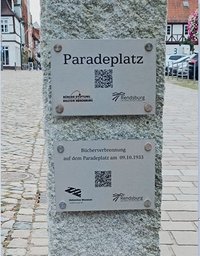 Am Schluss möchten wir Sie auf die Ehrentafel an der Stele auf dem Paradeplatz aufmerksam machen, die anlässlich der Bücherverbrennung angefertigt wurde.