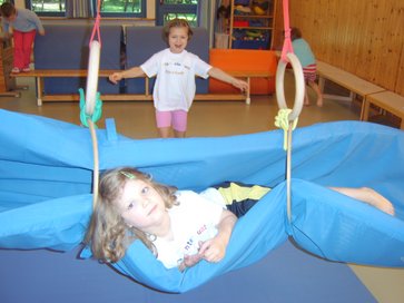 - Es finden jeden Tag gezielte Bewegungsangebote (Psychomotorik, Kinderturnen und Miniturnen) in der Halle statt.