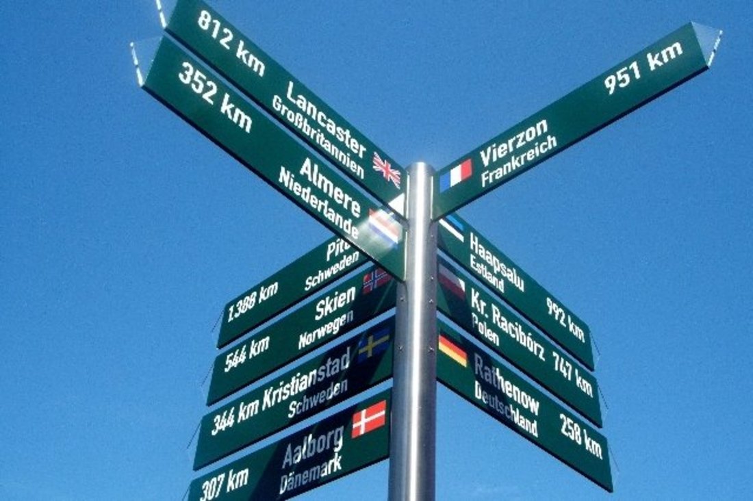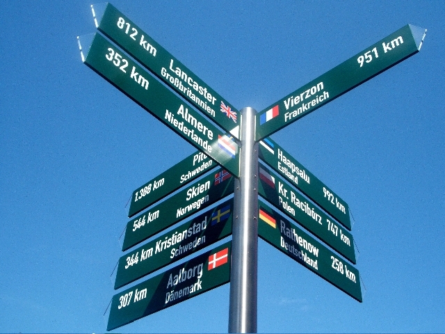 Als Ausdruck dieser Verbundenheit gibt es neben den Ortseingangstafeln und der Benennung von Straßen seit 2008 auch einen Wegweiser auf dem Schiffbrückenplatz, der auf die kommunalen partnerschaftlichen Kontakte der Stadt Rendsburg hinweist.