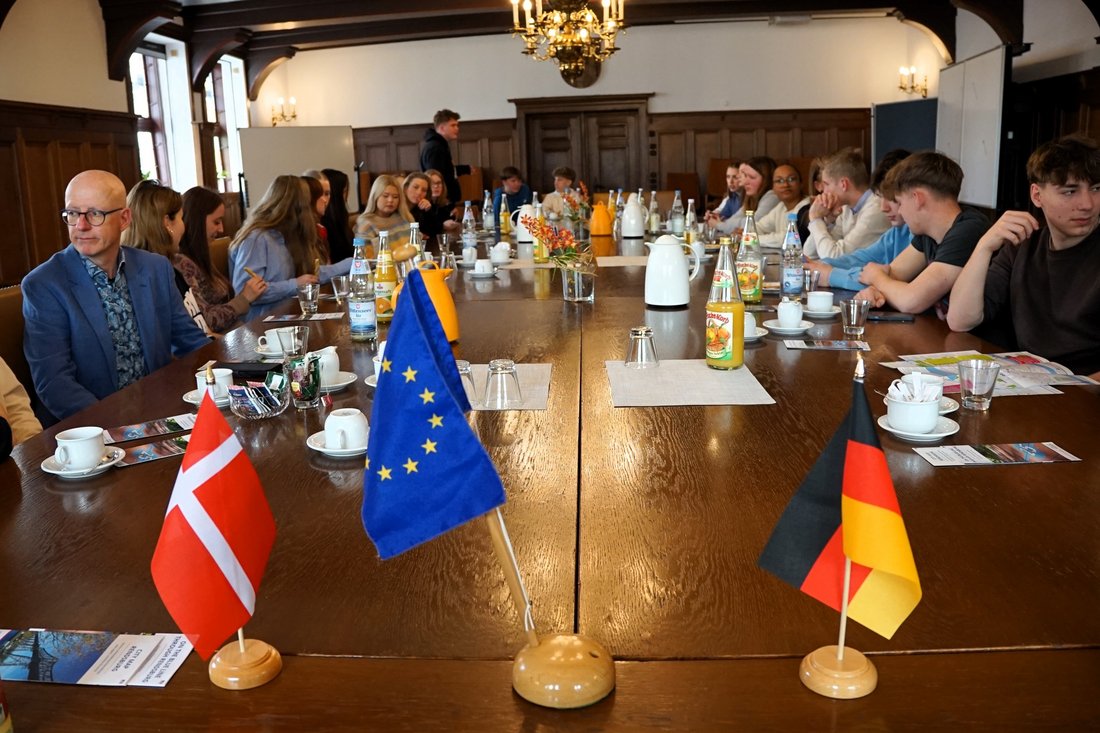 Seit 10 Jahren besteht ein regelmäßiger Schüleraustausch zwischen der Katedralskole aus Aalborg in Dänemark und dem Gymnasium Kronwerk in Rendsburg. In dem Zeitraum vom 24. bis 28. März 2025 besuchen eine Gruppe von 13 Schülerinnen und Schülern mit ihren begleitenden Lehrkräften aus Aalborg das Konwerk Gymnasium zu einem einwöchigen Austausch. Neben der Teilnahme am Unterricht sind auch der Besuch der Museen im Kulturzentrum, eine Stadtführung sowie eine Fahrt nach Lübeck geplant. Abgerundet wird das Besuchsprogramm durch weitere gemeinsame Begegnungen. Der Gegenbesuch ist bereits für September geplant. Dann fahren die Kronwerker Schülerinnen und Schüler nach Aalborg. Die Schülerinnen und Schüler haben sich bei der Gelegenheit ins Goldene Buch der Stadt Rendsburg eingetragen. Sie wurden am Dienstag den 25. März im Raatssaal des Alten Rathauses durch die Bürgermeisterin Janet Sönnichsen begrüßt.
