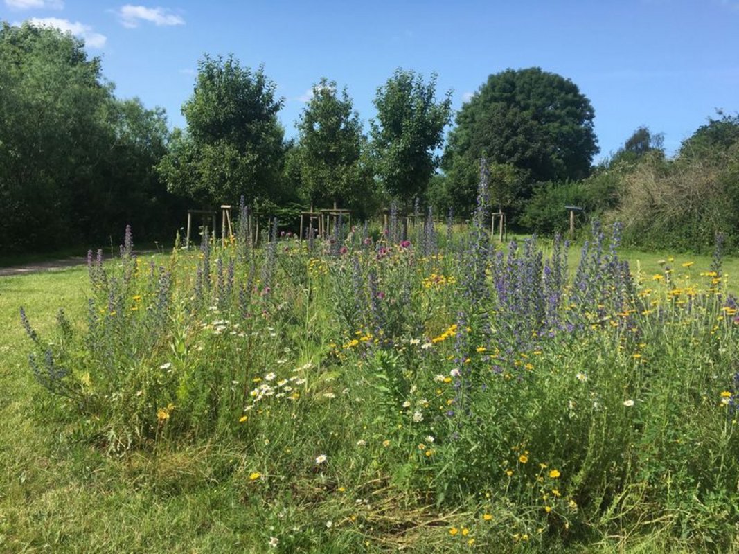 Besonderheiten: Wildblumenwiese, Insektenhotel, Fledermauskästen, Vogelnistkästen