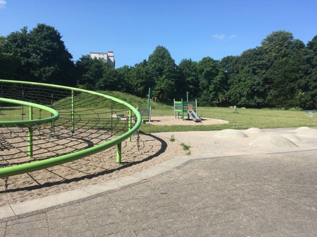 Freizeiteinrichtungen: Fußball- und Basketballplatz, Netzspielgerät, Parkour, Spielplatz mit Seilbahn, Rodelhügel